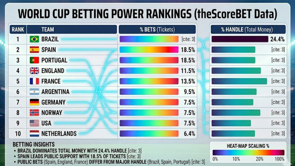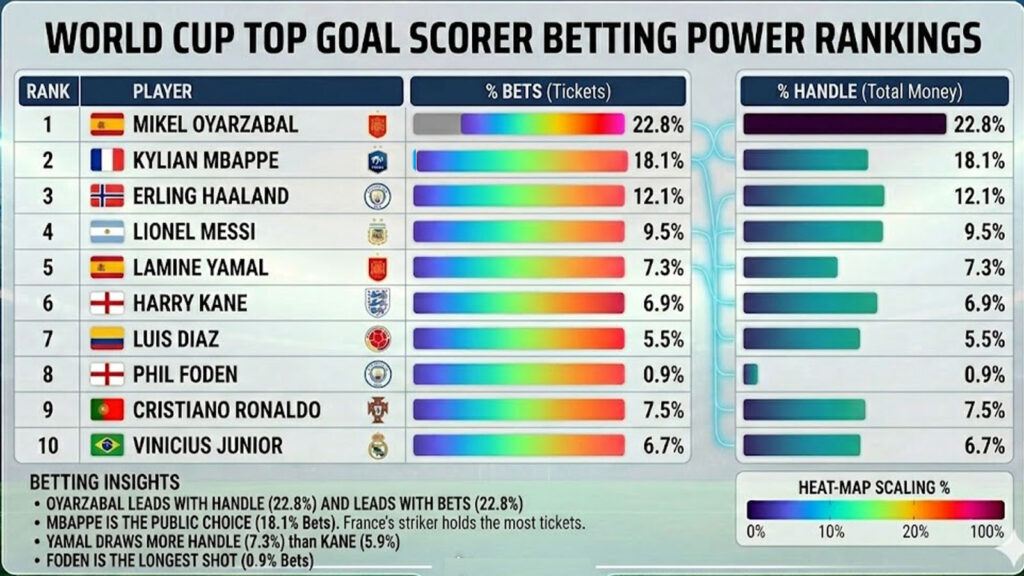On the market side, liquidity is expected to surge. The 2022 World Cup shattered betting handle records worldwide, and 2026 arrives amid rapid growth in U.S. legal sports betting, prediction markets, and AI-driven modeling. Books will offer deeper menu options than ever: expanded player props, micro-markets, live in-game derivatives, and same-game parlays layered onto a month-long global event.